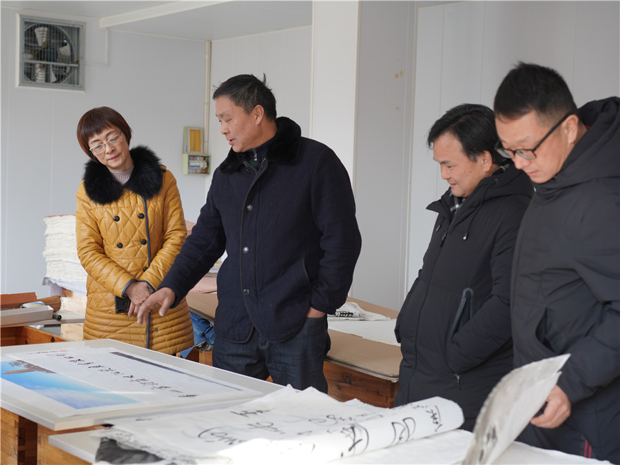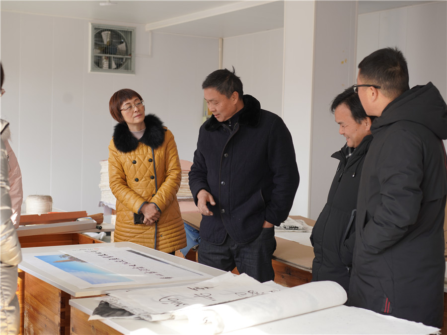 1月11日由市文旅局副局長王迎春帶隊的,黃山市非物質文化遺產傳習基地驗收組到我司黃山市凝霜文化發展有限公司進行調研工作。